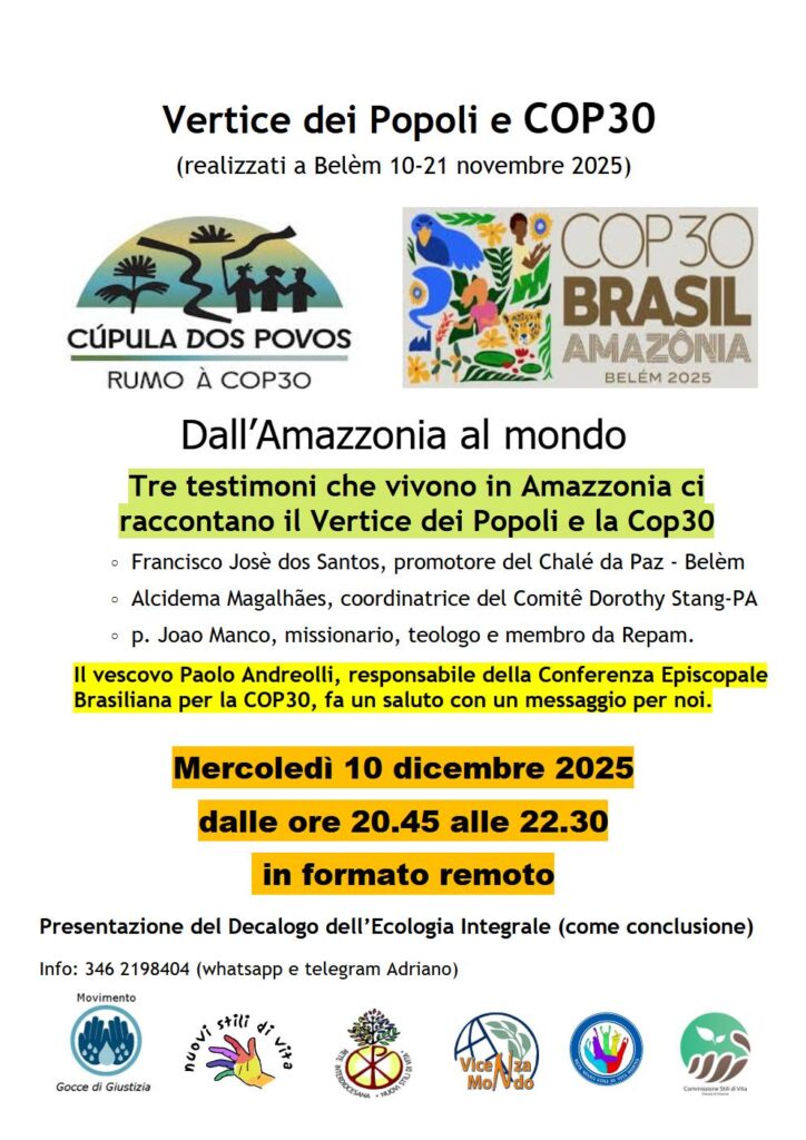 promotore e coordinatore del Movimento Gocce Giustizia e del Movimento nazionale Nuovi Stili di Vita